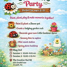 Paint, Plant, Play & make memories together 🌼 Join us for some early Mother's day fun for moms & minis! Activities include: 🎨 Paint & Plant a flower pot 🐞 Create a ladybug garden rock 🧑🎨 Decorate your own Little Gardener Apron 🔍 Sensory bins to explore 🍪 Mini snack station 📷 Spring photo backdrop Ages 2-5 Registration includes 1 child and 1 adult